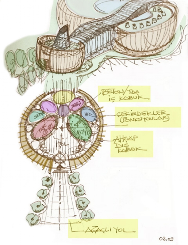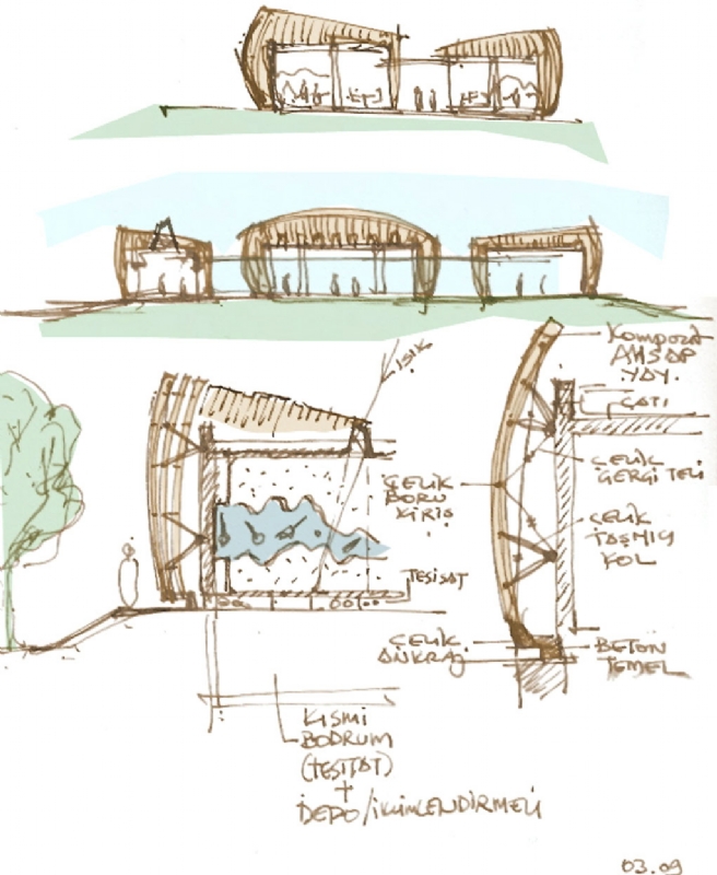 Enstruman koleksiyonu sergilemek için bina konsept proje